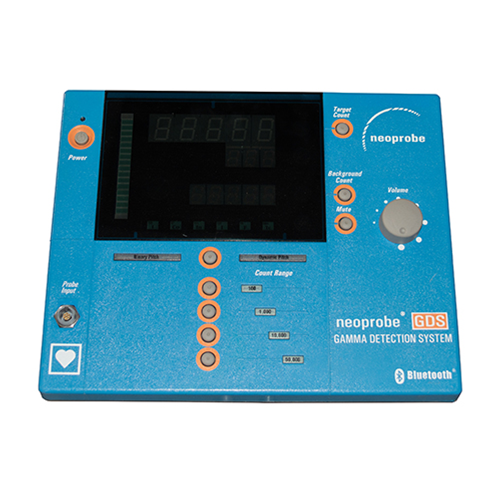 The Neoprobe GDS (Gamma Detection System) features Bluetooth wireless technology and is able to identify gamma rays emitted from radioactive isotopes in body organs or tissue. Through a combination of visual and auditory indicators, the system accurately quantifies gamma radioactivity levels. Utilizing the inverse square law of physics, the hand-held probe is able to detect radiation from even the smallest sources. With support for a Bluetooth probe, the Neoprobe offers exceptional directionality and sensitivity, delivering precise localization of targeted tissue during gamma detection procedures.